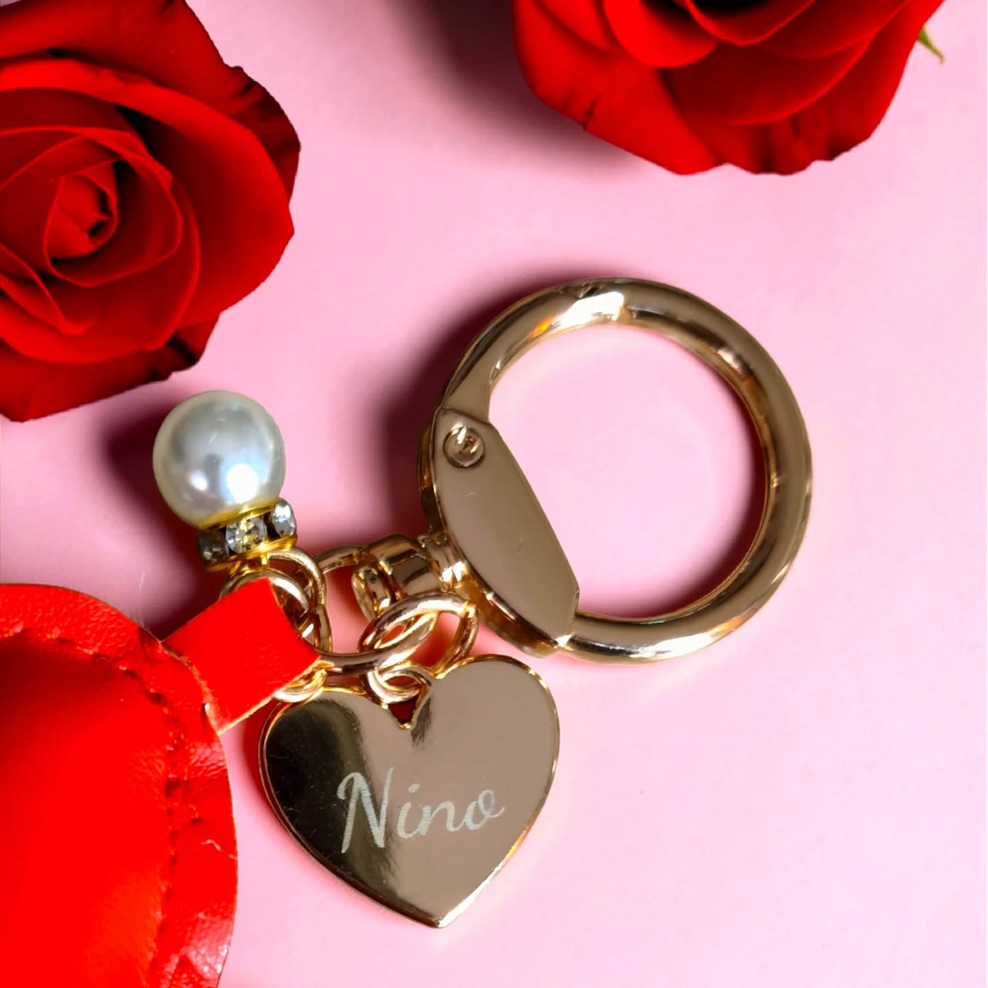 Un joli porte-clés à accrocher au sac à main ou aux clés, avec son cœur personnalisé et son petit bijou gravé au prénom de ses petits-enfants